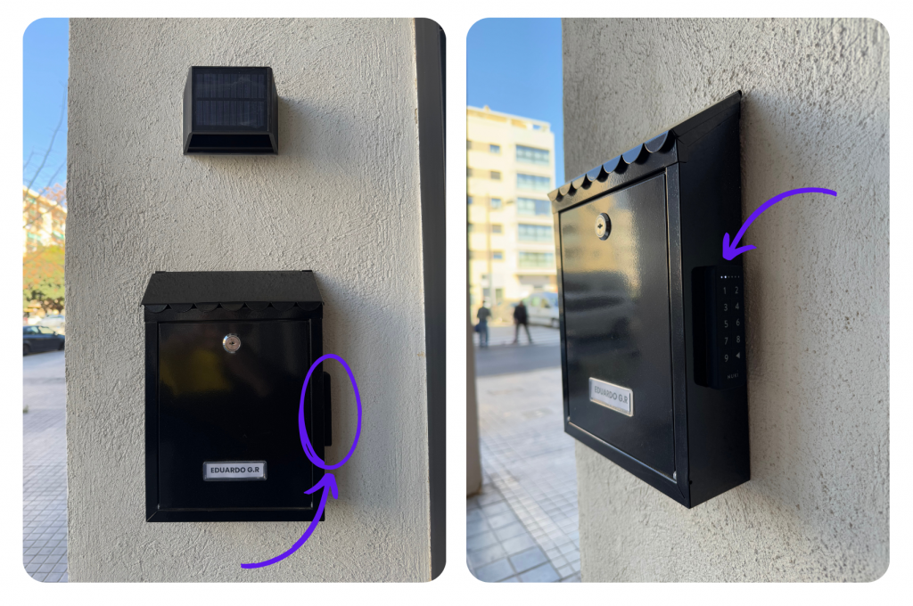 3. El teclado para introducir la combinación esta en un lateral del buzón de correo. Una vez dentro encontrarás 1 juego de llave para acceder con llave o también podrás acceder con la combinación durate tu estancia.